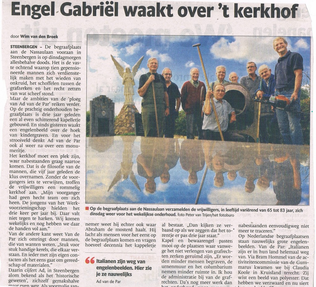 Vlinderijnes creƫerde een Engel op de begraafplaats in Steenbergen. Deze Engel wordt ieder jaar letterlijk in de spotlights gezet dankzij Stichting Allerzielen in Steenbergen.